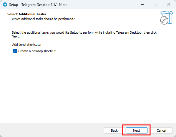 1. 이제 텔레그램 PC버전 설치 과정에 대한 안내입니다. 위에서 텔레그렘 PC버전 다운로드가 완료되었고 설치 파일을 클릭하면 아래와 같이 설치가 진행됩니다. 언어는 영어로 해두고 설치를 진행해 주세요. 나중에 한글로 바꿀 수 있으니 언어는 신경 쓰지 마세요.