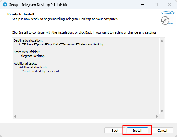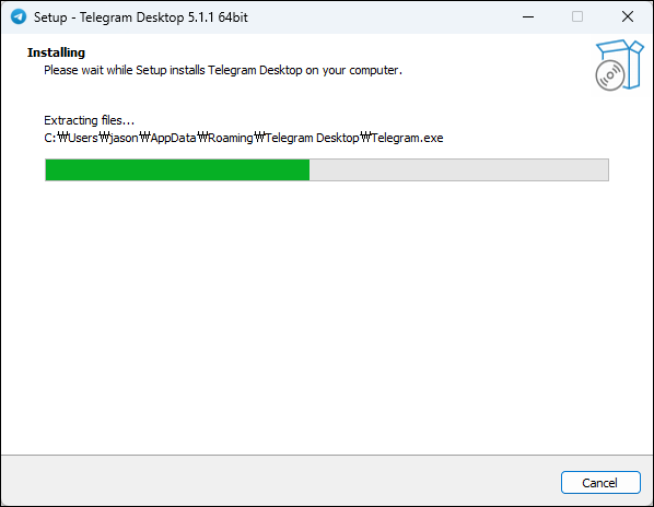 4. 계속 설치를 진행하시면 아래와 같이 Installing 화면이 나오며 텔레그램 PC버전 설치가 진행됩니다.